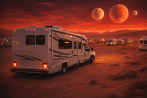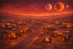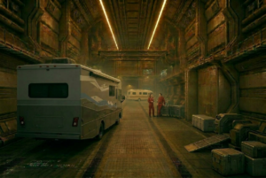 Schließlich ist klar, die THERESA muss früher starten, als geplant. Noch bevor die Lebensräume für die Crew fertiggestellt sind. Es wird auf Bestehendes pragmatisch zurückgegriffen, auf mobile Wohneinheiten, die sofort einsatzbereit sind: Wohnmobile und Wohnwagen. Mit dieser Idee wird auch ein schneller und sofort lebensfähiger Umzug der Menschheit auf einen neuen Planeten, machbar.