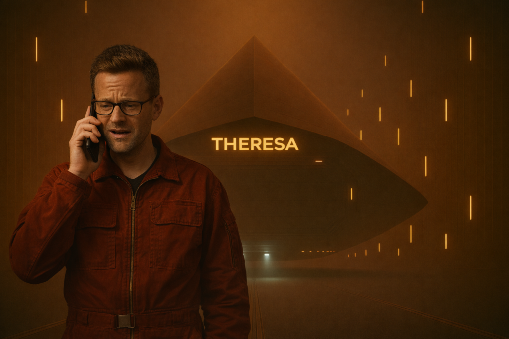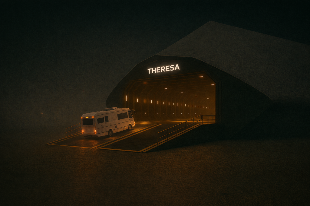 Ort/Bühne: Es ist leer und dunkel. Da hallen Schritte durch die riesige Halle in der die THERESA auf ihr letztes Crew Mitglied wartet…