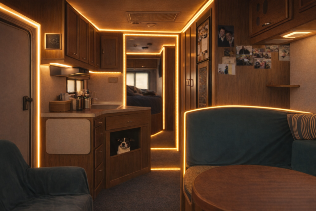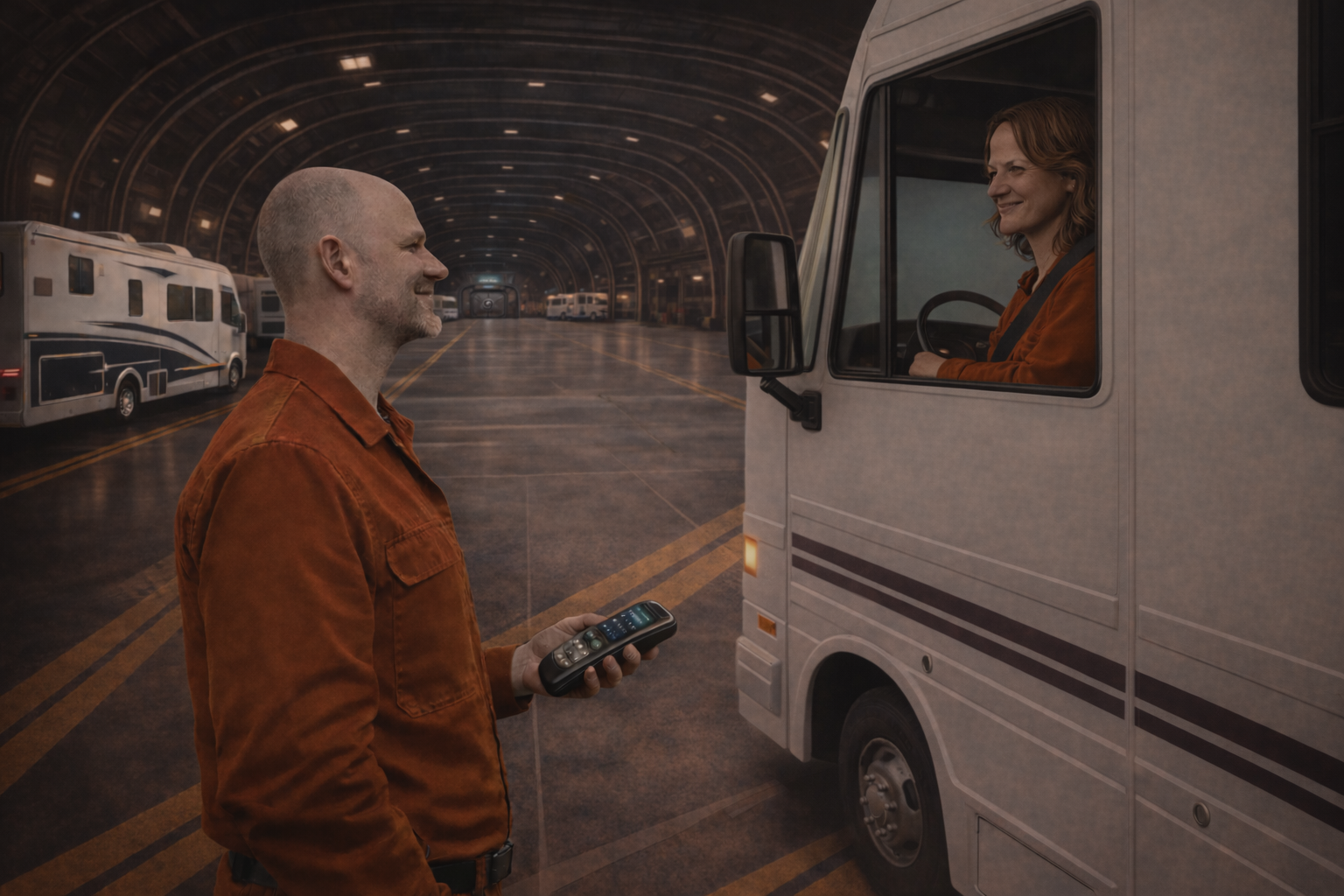 Bühne: Das Wohnmobil ist an der Beladerampe beim Check in angekommen.